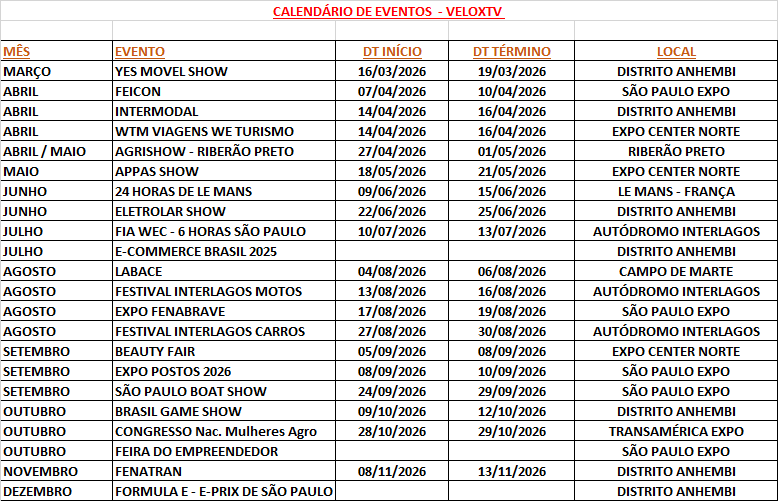 Segue a relação de algumas Feiras & Eventos – Nacionais e Internacionais em 2026.